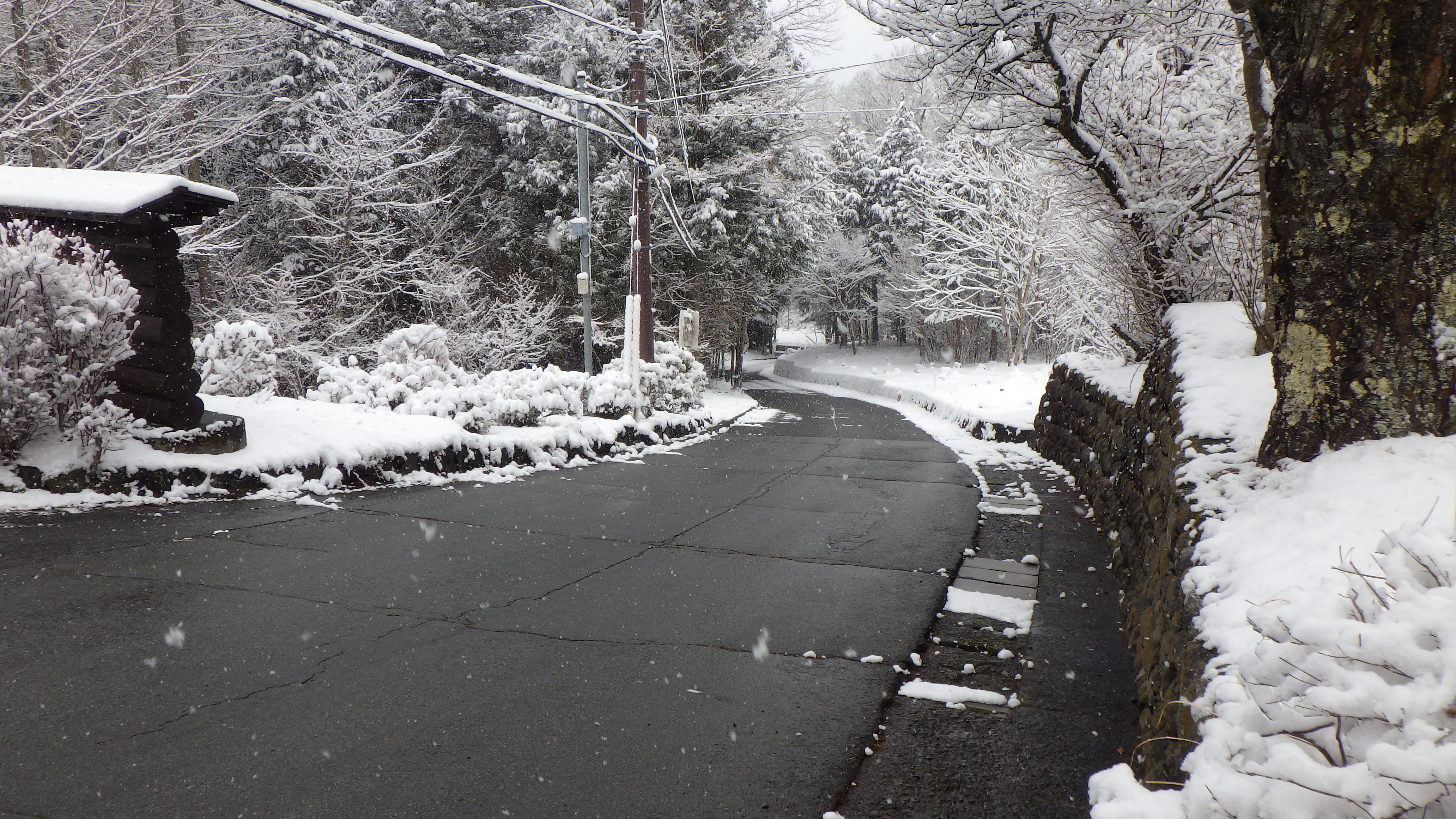侵入路は路面が見えていますが、別荘地内の一番多いところでは約10㎝の積雪となっています。