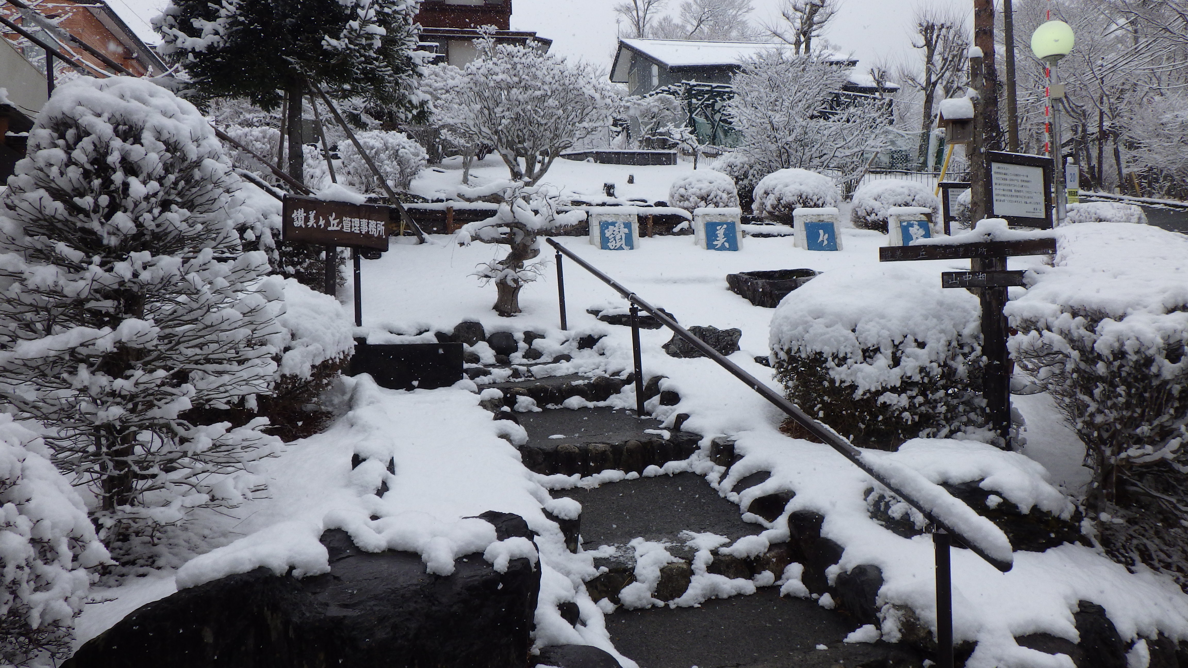 山中湖では9時頃から雪が降り始め、現在も降り続いています。